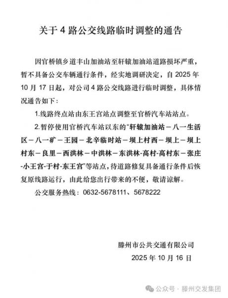 關(guān)于4路公交線路臨時(shí)調(diào)整的通告