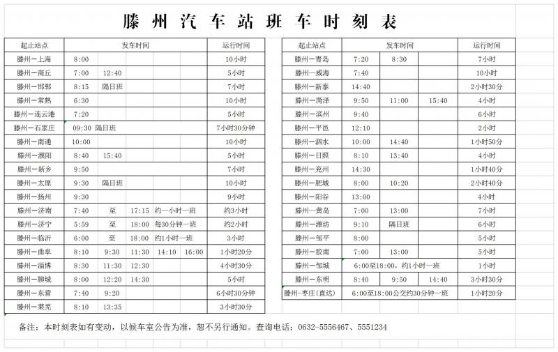 滕州汽車站班車時(shí)刻表