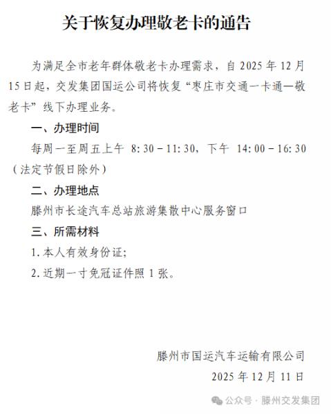 關(guān)于恢復(fù)辦理敬老卡的通告