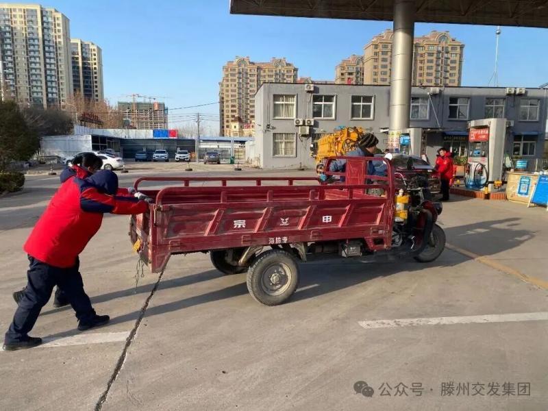 據(jù)了解,當日中午,交發(fā)集團能源公司王延清、張蕾蕾兩名當班加油員敏銳發(fā)現(xiàn)一輛三輪車停在行車道,意識到情況危險,兩人快步上前,詢問車主后,才得知是車輛燃油耗盡失去了動力。于是二人挽起衣袖、一人在前把控方向,一人在后助推車身,合力將沉重的三輪摩托車緩緩?fù)葡蚋浇募佑蜋C旁并順利完成加油,車輛也很快恢復(fù)正常啟動。面對兩人的熱心幫助,車主緊緊握住她們的手連連道謝。