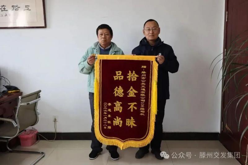 1月28日,市民李先生將一面印有“拾金不昧 品德高尚”的錦旗送到交發(fā)集團(tuán)公交公司工作人員手中,對(duì)公交二分公司K108路駕駛員劉薇薇師傅拾金不昧的善舉表達(dá)誠(chéng)摯感謝。