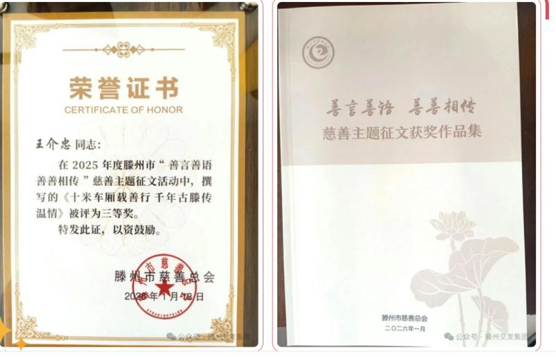 近日,2025年“善言善語 善善相傳”慈善主題征文活動評選結(jié)果出爐。交發(fā)集團國運公司報送的《十米車廂載善行 千年古滕傳溫情》榮獲三等獎。