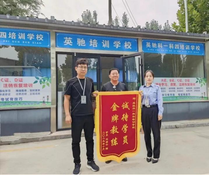“感謝咱們英馳培訓(xùn)學(xué)校用心的指導(dǎo),我從報(bào)名到拿證僅僅用了2天的時(shí)間......”10月7日上午,D證學(xué)員劉先生來到交發(fā)集團(tuán)恒通公司,將一面寫有“金牌教練 誠(chéng)待學(xué)員”的錦旗送到公司工作人員手中,對(duì)教練員的用心指導(dǎo)、貼心服務(wù)和專業(yè)教學(xué)給予高度評(píng)價(jià)并表示真誠(chéng)的感謝。
