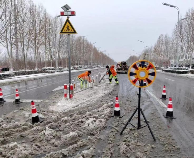 集團(tuán)恒通公司交通設(shè)施廠聞令而動(dòng),全員上陣,加大路面交通設(shè)施的巡檢、巡查力度,開(kāi)啟除冰雪保暢模式,迅速出動(dòng)應(yīng)急隊(duì)伍和設(shè)備,重點(diǎn)圍繞道路急彎、陡坡、橋梁等易積雪積冰路段開(kāi)展除冰雪作業(yè),并修復(fù)損壞的交通設(shè)施,全力確保雪天道路交通安全、有序、暢通。