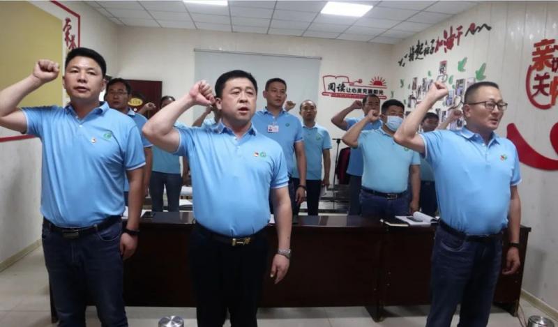 活動(dòng)中,全體黨員面對(duì)黨旗,莊嚴(yán)地舉起右手,用重溫入黨誓詞的方式,再次喚醒最初的入黨之心。