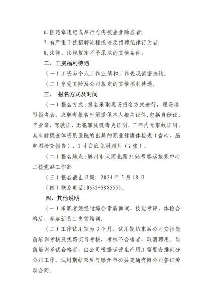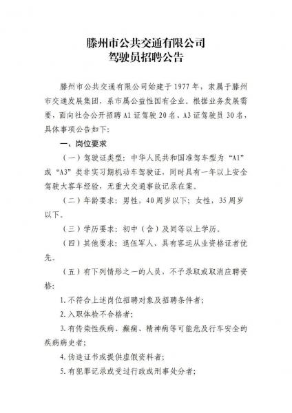 滕州市公共交通有限公司駕駛員招聘公告